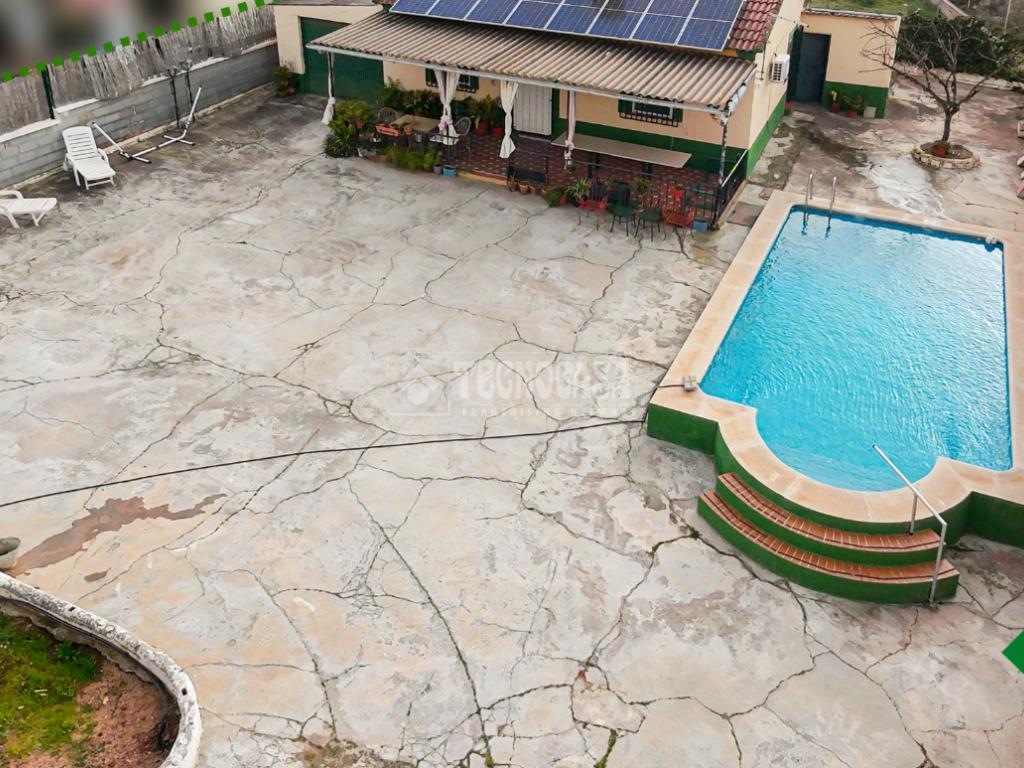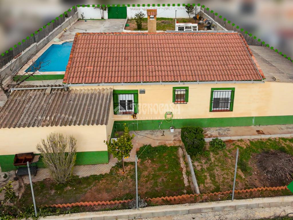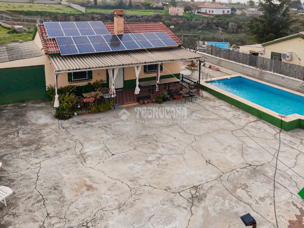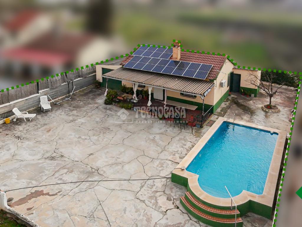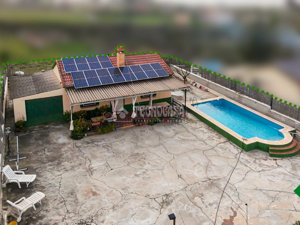 Cortijo en los Tablazos, el cual cuenta con una casa distribuida en salón-cocina, dos dormitorios, cuarto de baño completo, cochera y placas solares.