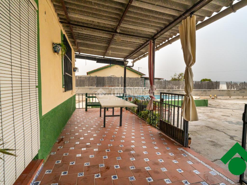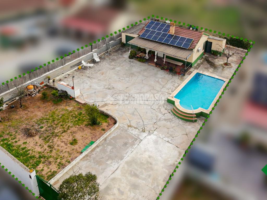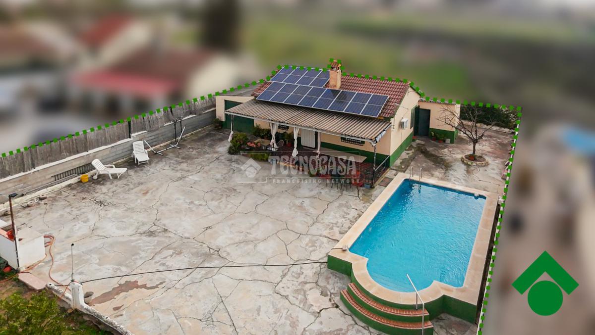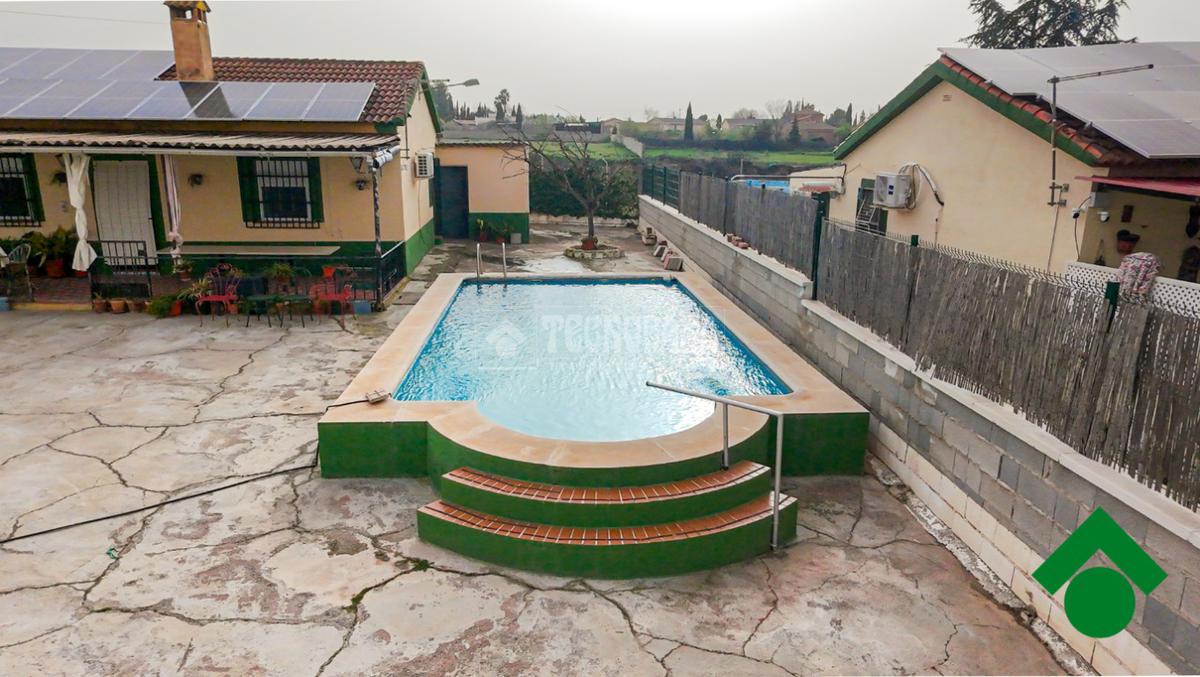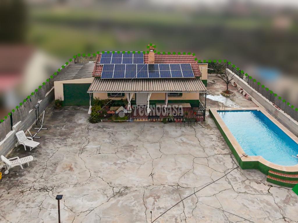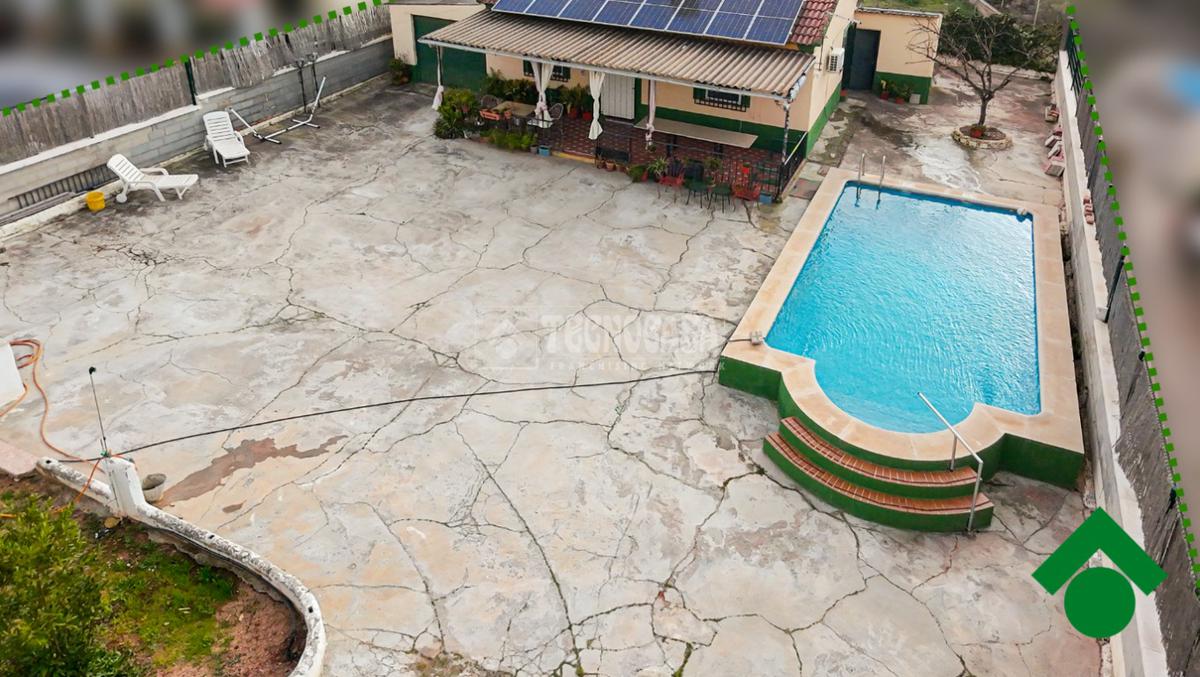 Cortijo en los Tablazos, el cual cuenta con una casa distribuida en salón-cocina, dos dormitorios, cuarto de baño completo, cochera y placas solares.