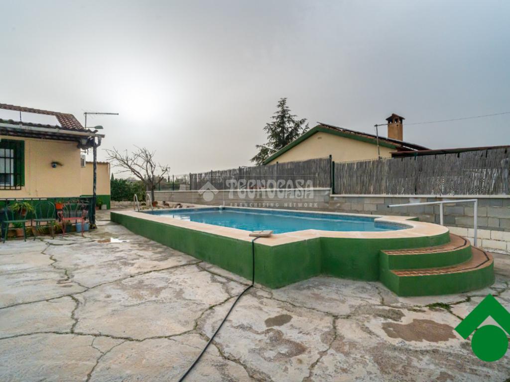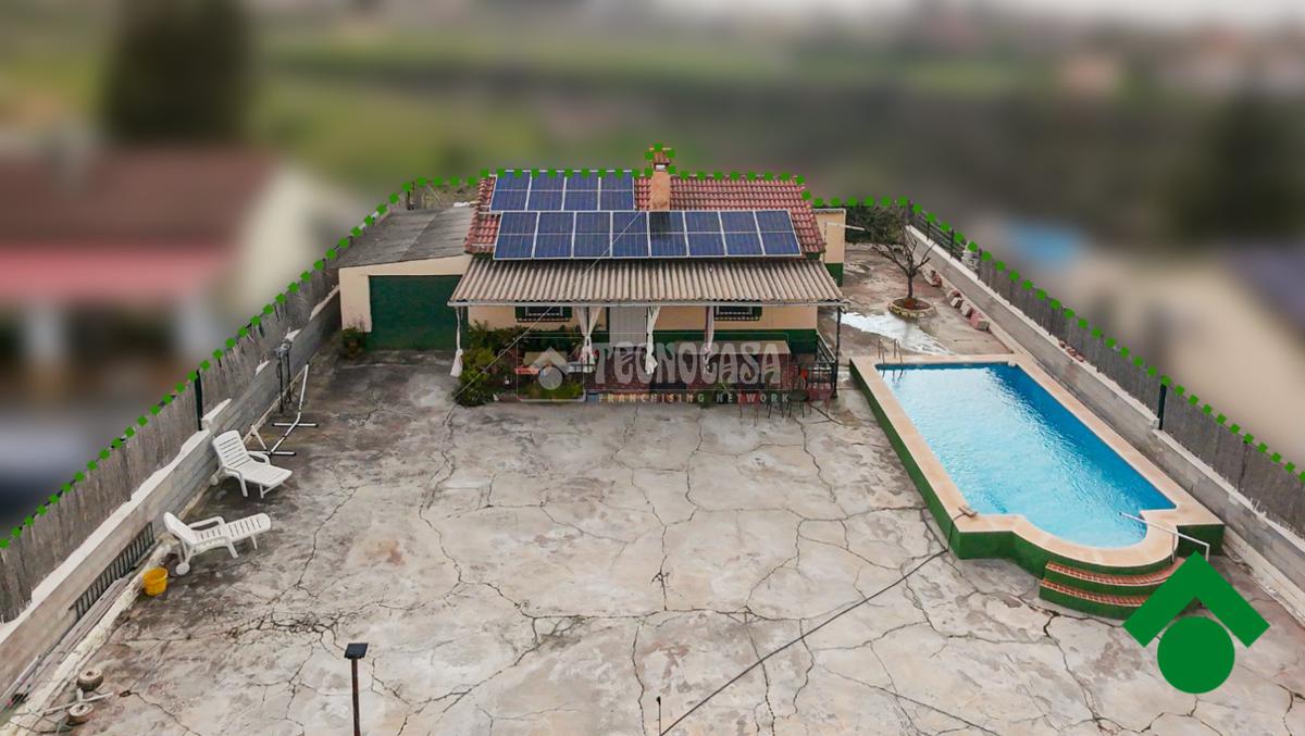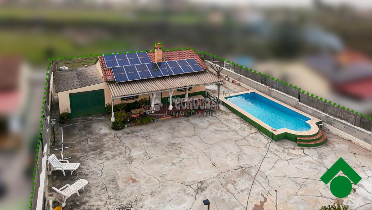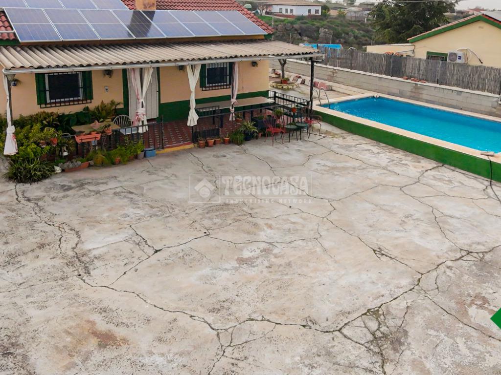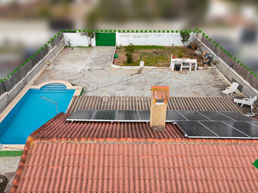 Cortijo en los Tablazos, el cual cuenta con una casa distribuida en salón-cocina, dos dormitorios, cuarto de baño completo, cochera y placas solares.