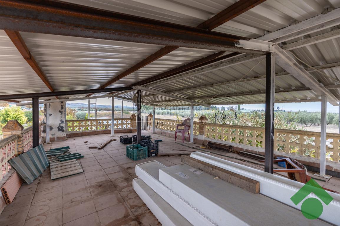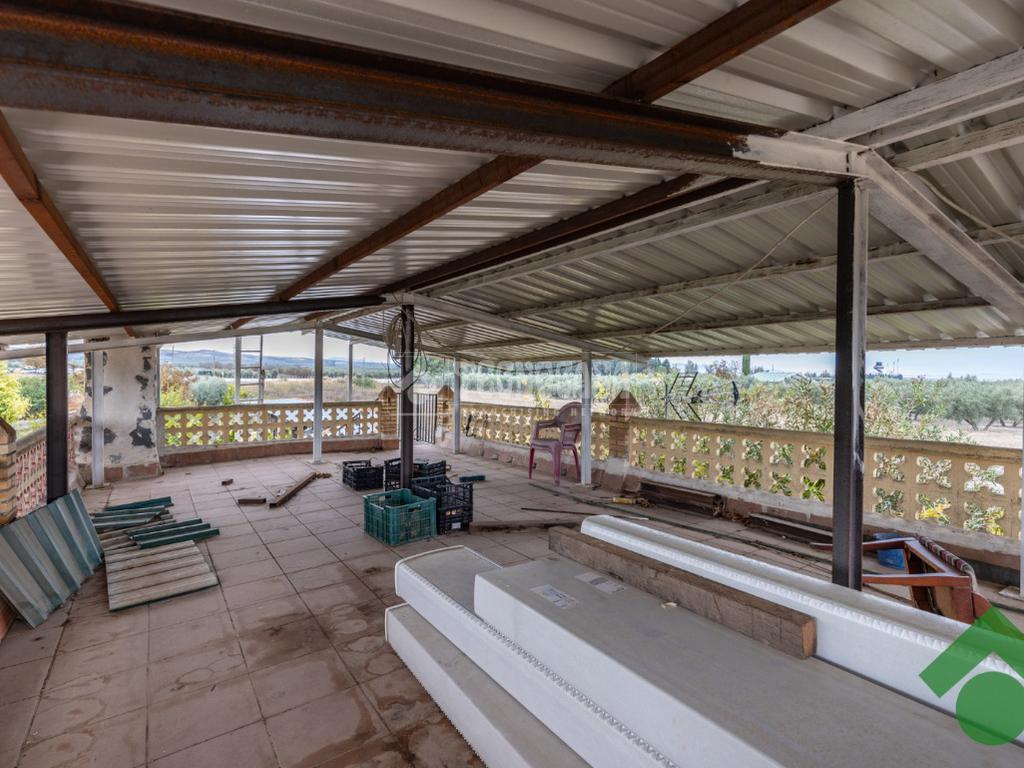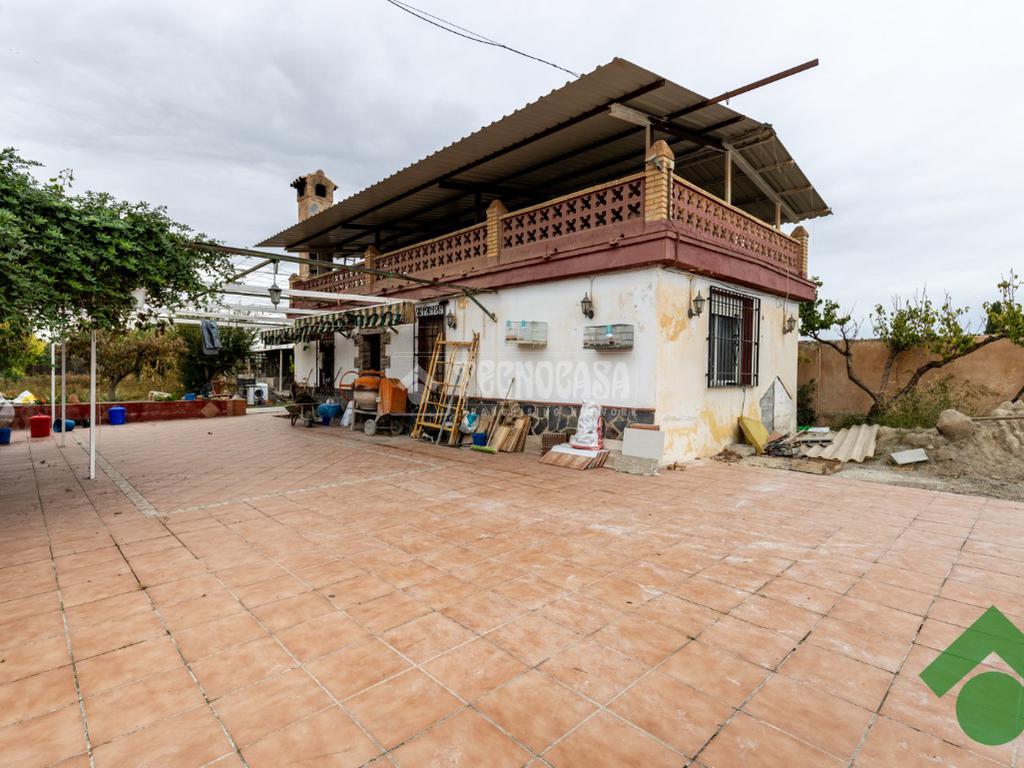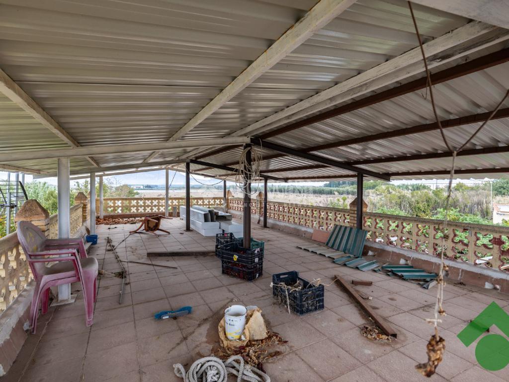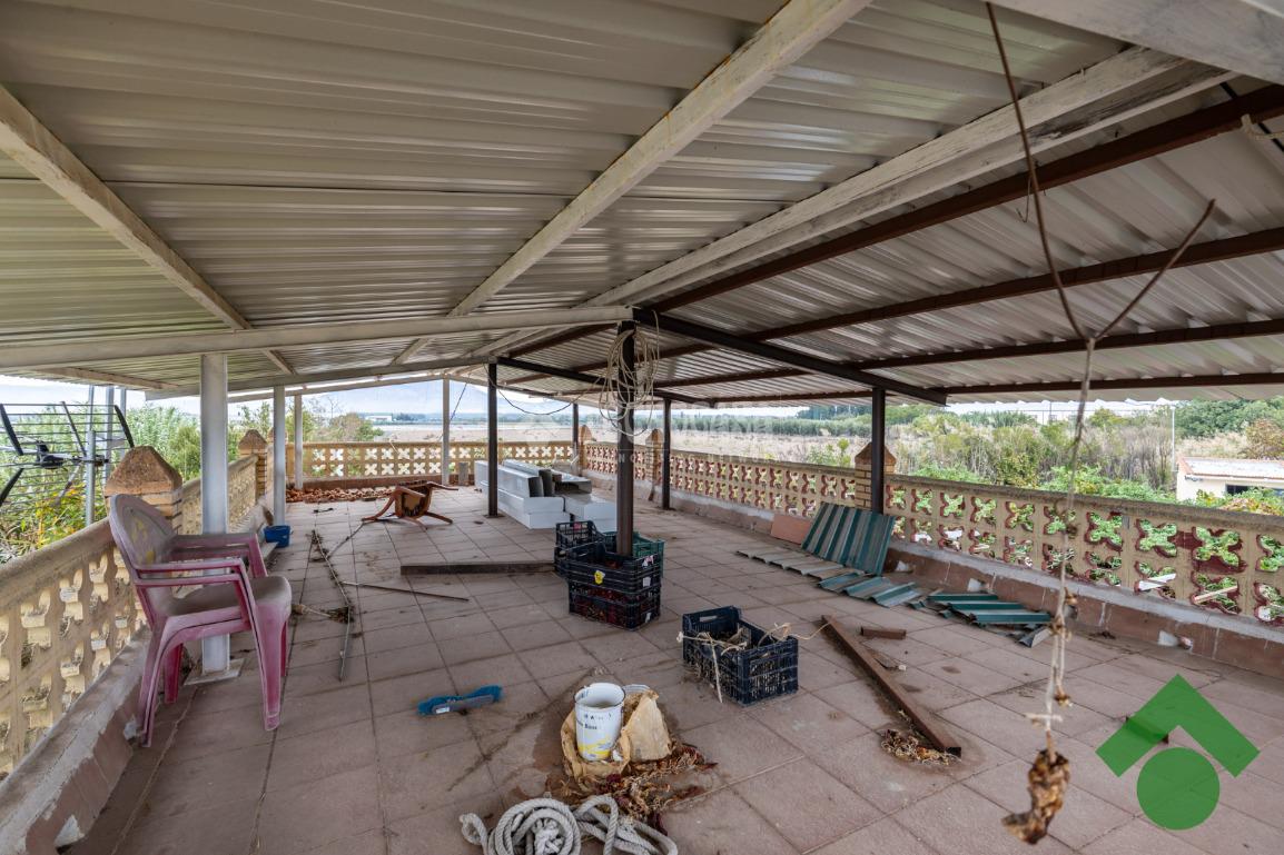 Finca de 5 marjales con una casa de unos 90 m2, la cual está distribuida en salón, cocina, 2 dormitorios y baño completo, y la parte de arriba tiene una gran terraza techada con un porche con barbacoa.