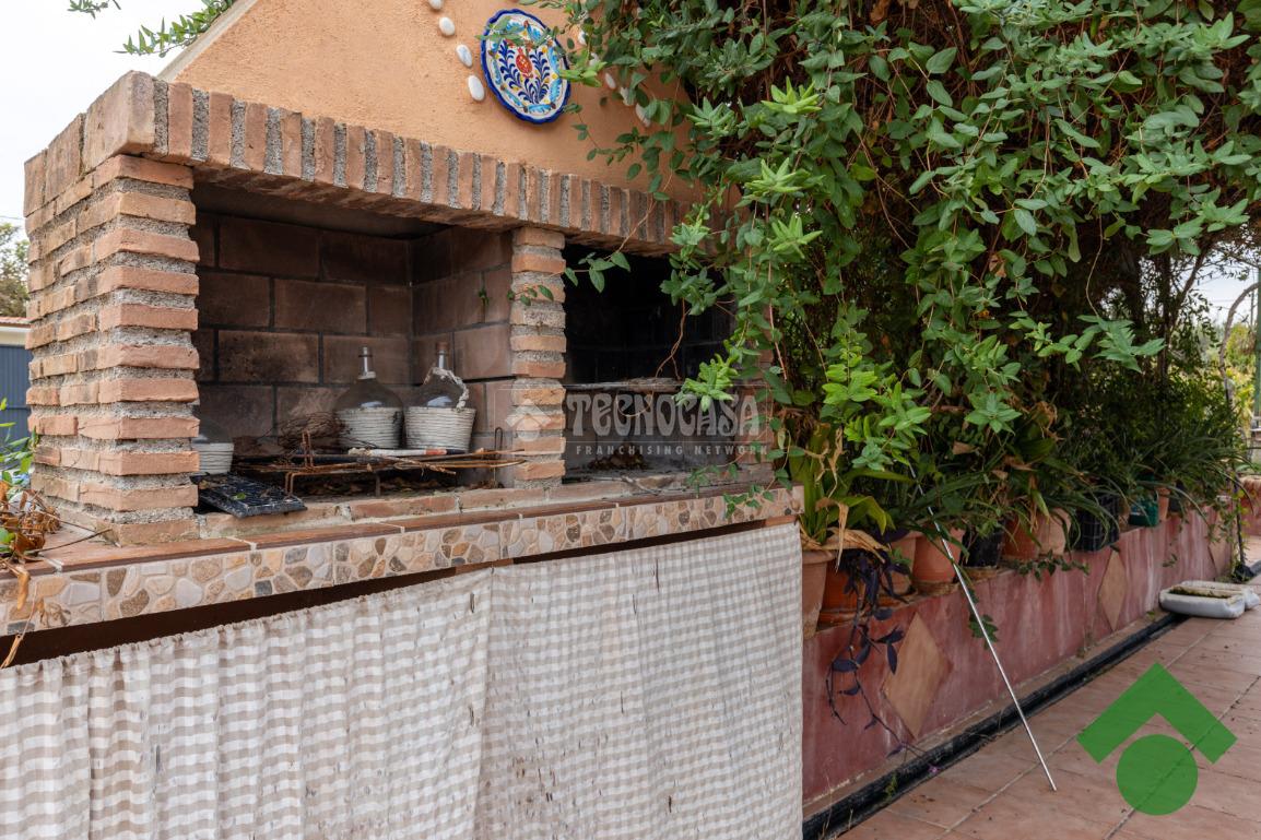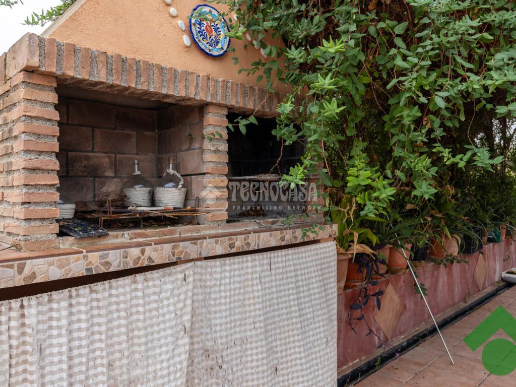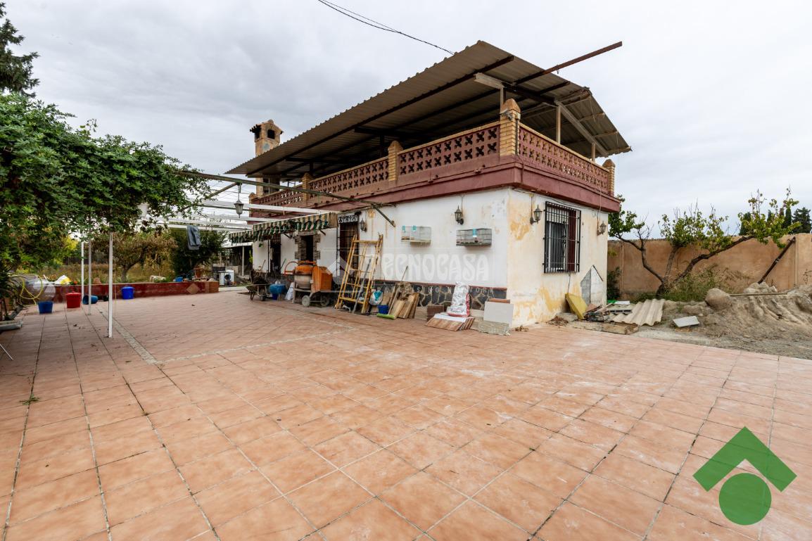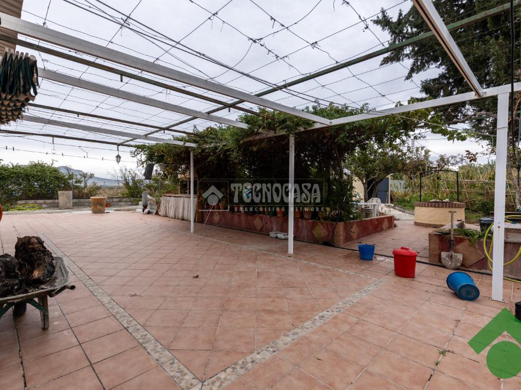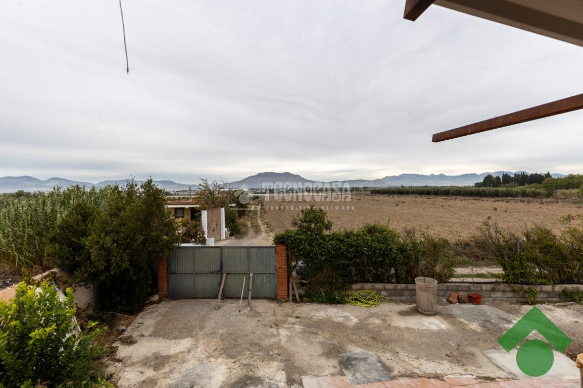 Finca de 5 marjales con una casa de unos 90 m2, la cual está distribuida en salón, cocina, 2 dormitorios y baño completo, y la parte de arriba tiene una gran terraza techada con un porche con barbacoa.